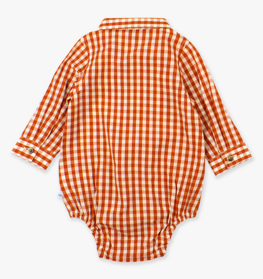 RuffleButts + RuggedButts - Long Sleeve Button Down Bodysuit - Classic Rust Gingham