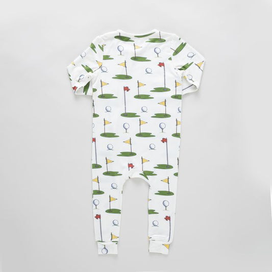 Pink Chicken- Baby Bamboo Romper - Cream Golf Tournament