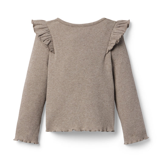 Janie and Jack - Ribbed Ruffle Shoulder Top - Brown Fox