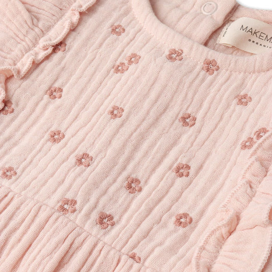 MakeMake Organics - Organic Embroidered Ruffle Romper - Blush