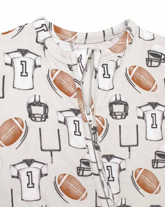 RuffleButts + RuggedButts - Football White Knit Long Sleeve Embroidered Henley Bodysuit