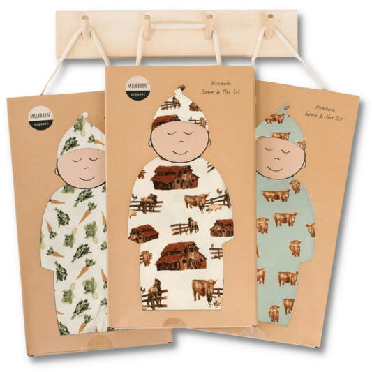Milkbarn - Organic Newborn Gown & Hat Set | Vintage Balloons