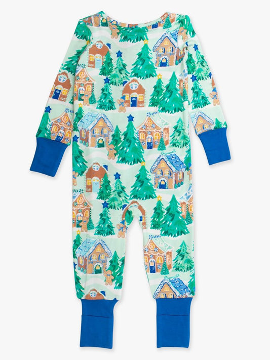 RuffleButts + RuggedButts - Convertible One Piece Pajama - Blue Jolly Gingerbread