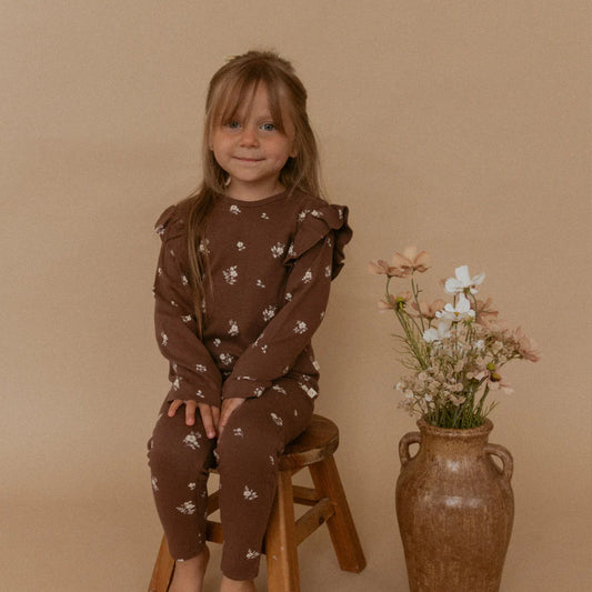 Makemake Organics - Organic Ruffle Long Sleeve & Legging Set - Dark Brown Top