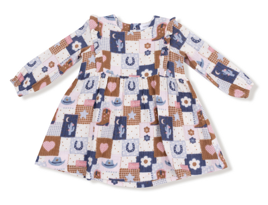 Angel Dear - Patchwork Cowgirl - Ruffle L/S Dress & Rib Legging