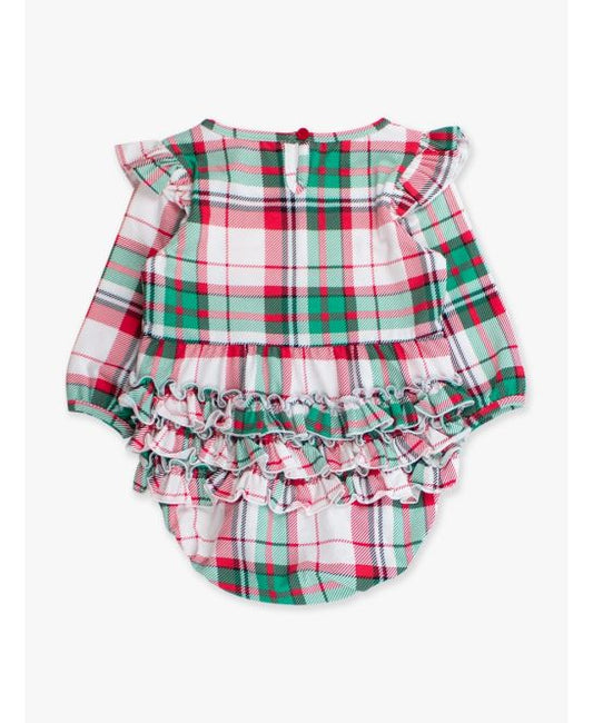 Rufflebutts + Ruggedbutts - Knit Long Sleeve Flutter Bubble Romper - Dashing Dreams Plaid