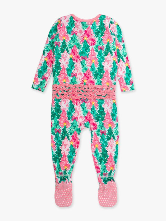RuffleButts + RuggedButts - Ruffle One Piece Footie Pajama - Pink Jolly Grove