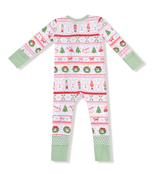 Angel Dear - Sugar Plum Fairy - Nutcracker Fair Isle - Pink - 2 Way Zipper Romper