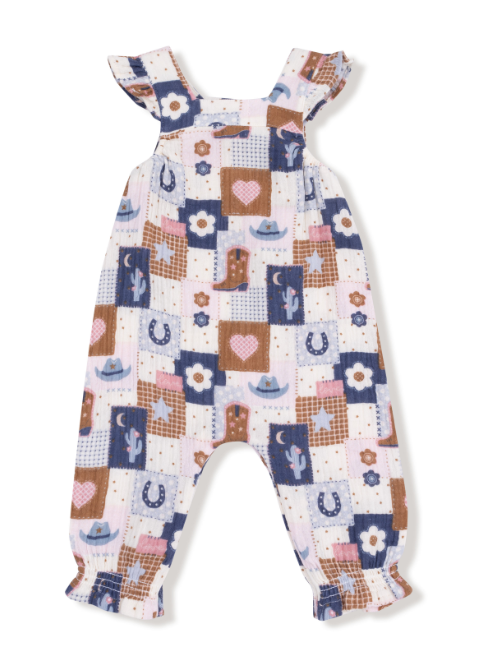 Angel Dear - Patchwork Cowgirl - Smocked Overall & Ribbed Bodysuit Set