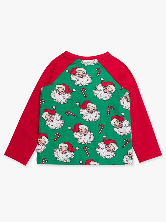 RuffleButts + RuggedButts - Long Sleeve Raglan Henley Tee - Green Santa Joy