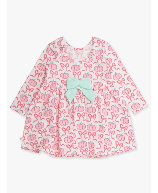 RuffleButts + RuggedButts - Long Sleeve Twirl Dress - Pink Fairytale Pumpkins