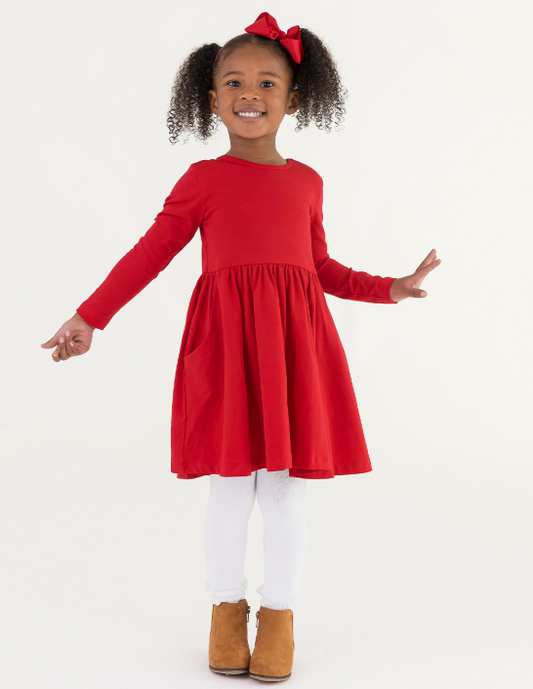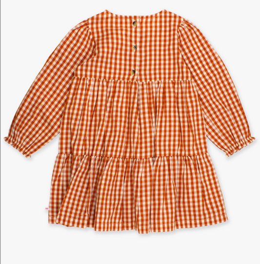 RuffleButts + RuggedButts - Woven Long Sleeve Tiered Twirl Dress - Classic Rust Gingham
