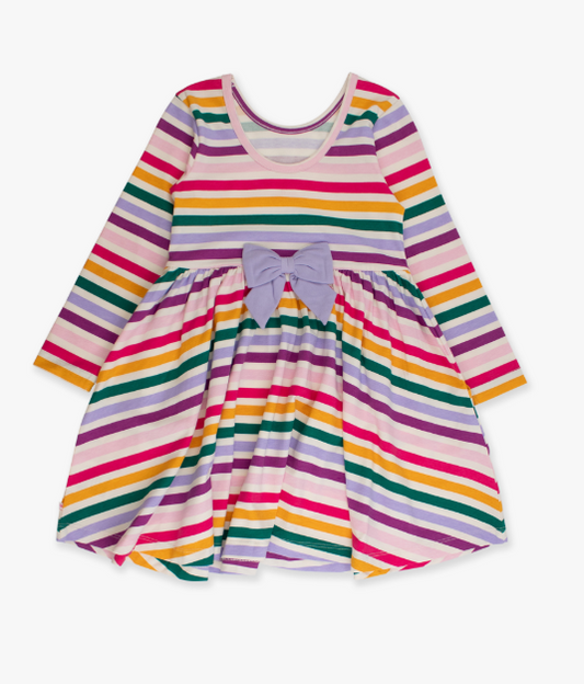 RuffleButts + RuggedButts - Knit Long Sleeve Twirl Dress - Colorful Rainbow Stripe