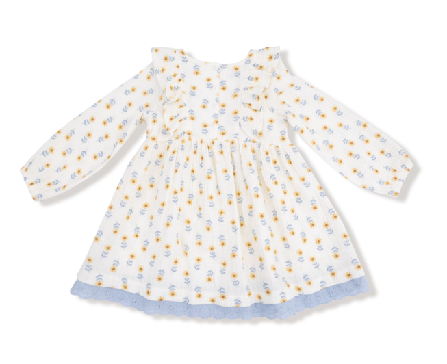 A little bit classic, a whole lot cozy! This darling set features a long sleeve dress made from soft organic cotton muslin with a sweet eyelet-trimmed hem, paired with stretchy ribbed modal leggings for ultimate comfort and cuteness. Perfect for cooler days, this outfit is made for twirls, toddles, and everything in between.