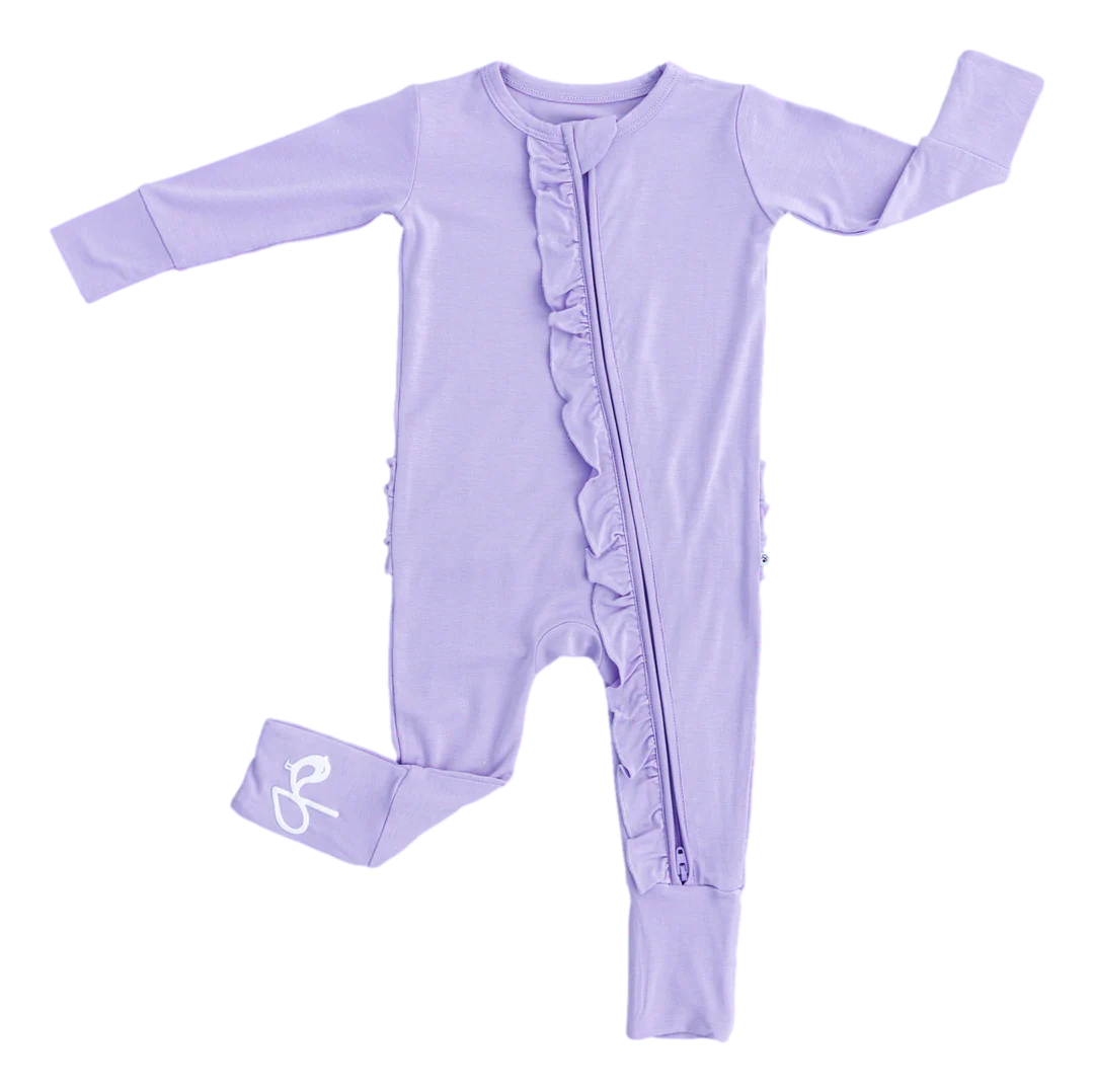 Birdie Bean - Lavender Ribbed Ruffle Convertible Romper PJ