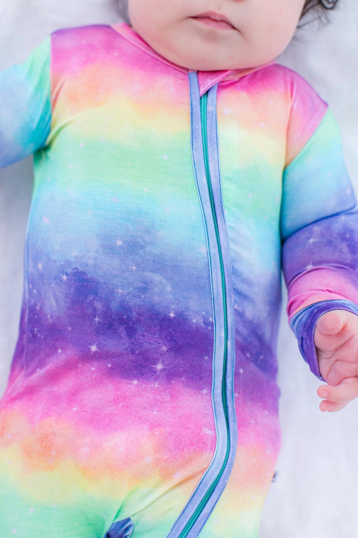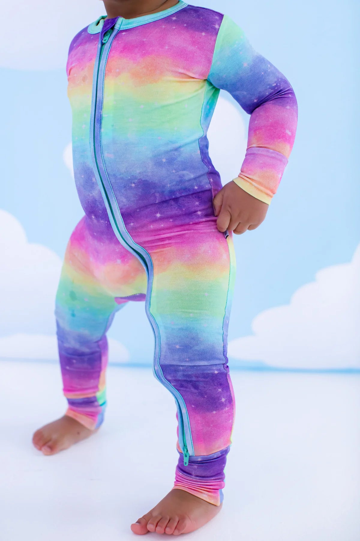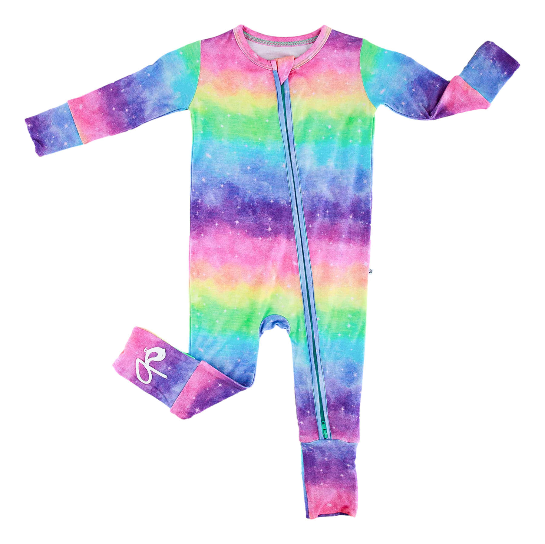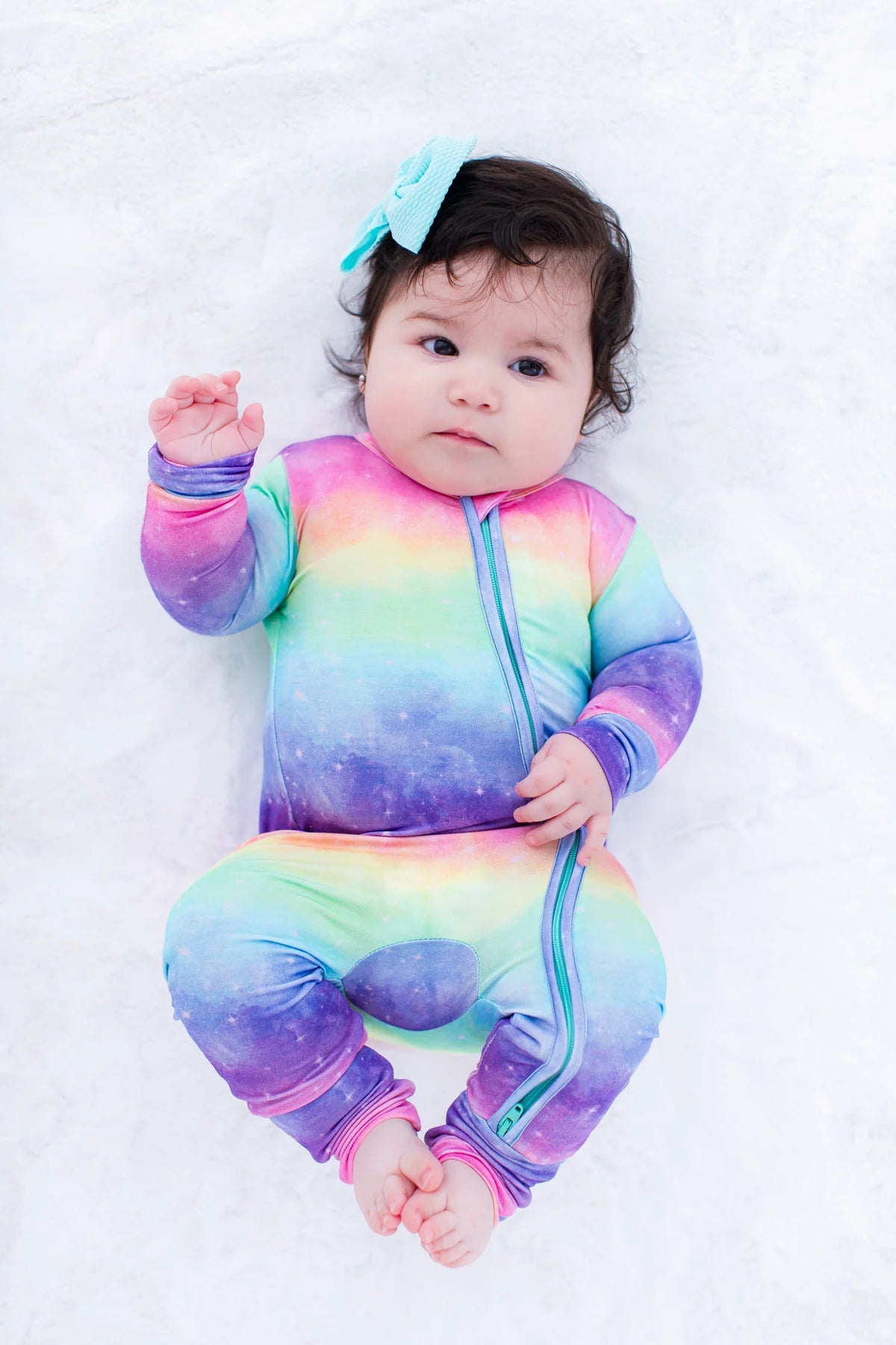Romper or footie? Why not have both in one piece? You will love the option and ease of turning your romper into a footie! Our 2-way zipper feature makes diaper changes a breeze. Printed on irresistibly soft viscose from bamboo with just a touch of spandex. The perfect combination of cuteness and comfort!