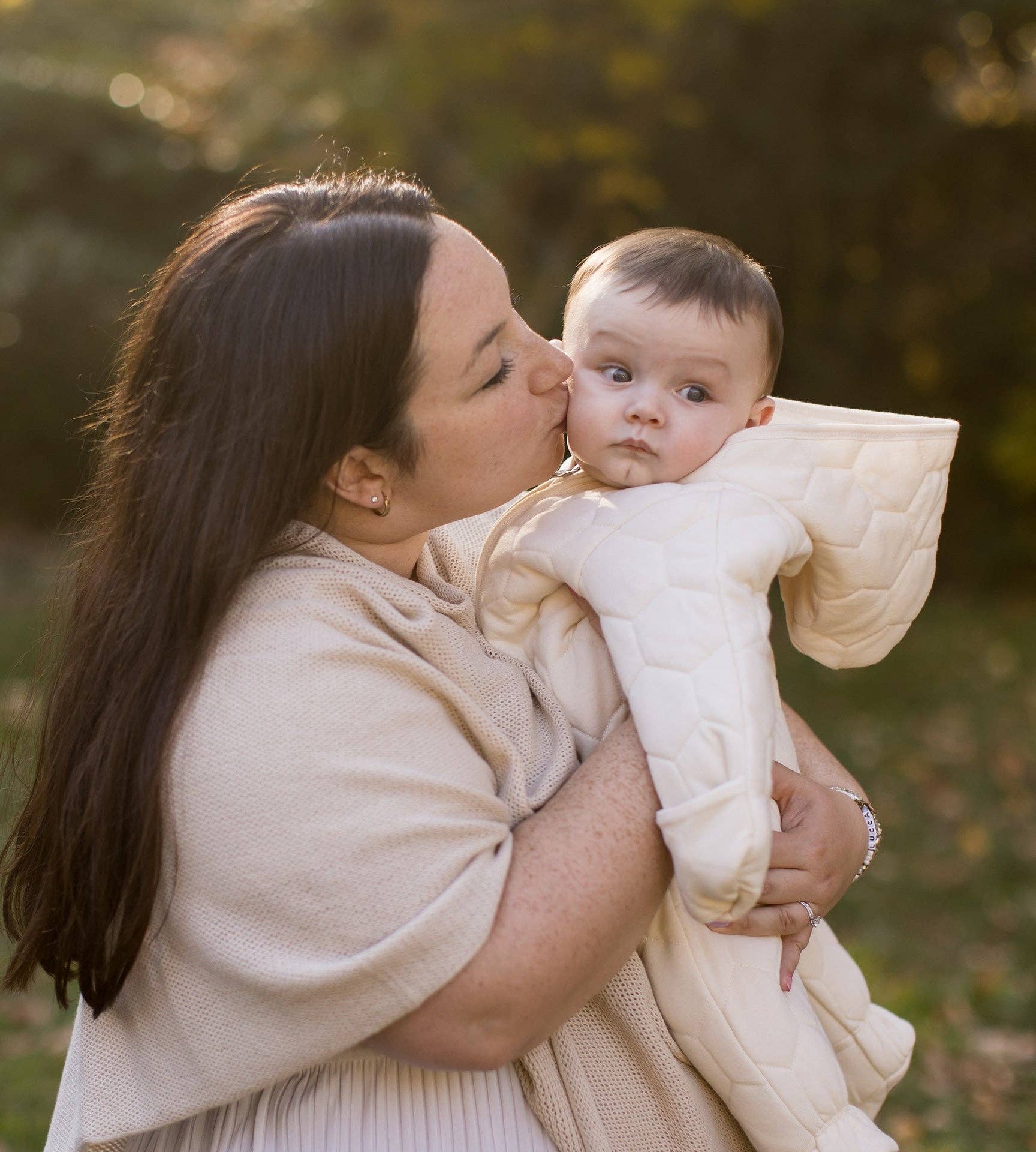 It's easier than ever to keep your little bee toasty warm from head to toe with our super snuggly honeycomb quilted bunting.