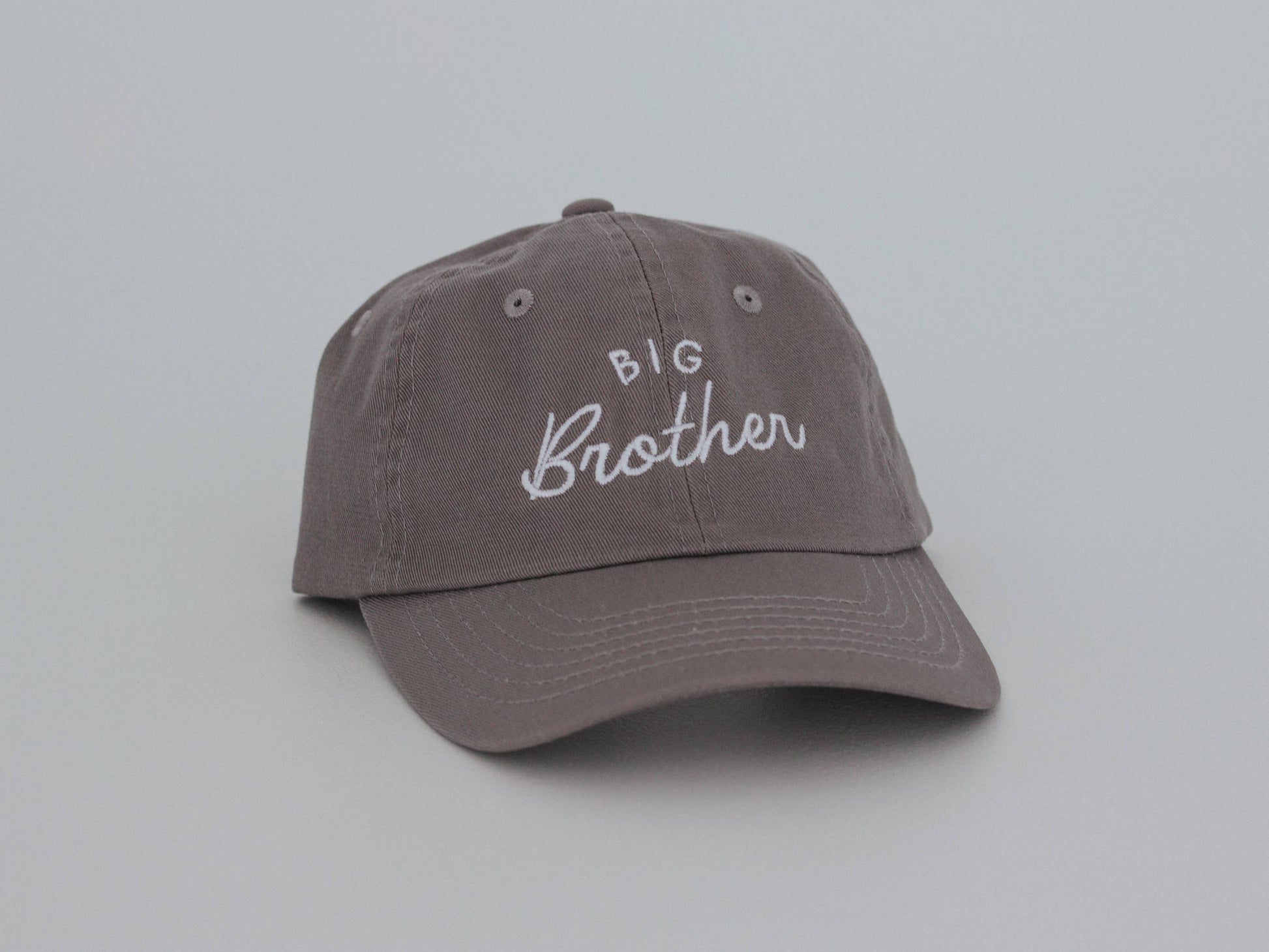 Featuring modern typography in crisp white thread, our original "Big Brother" design is a fun, personalized accessory for little guys to enjoy. Soft cotton twill is featured in a perfect charcoal neutral.