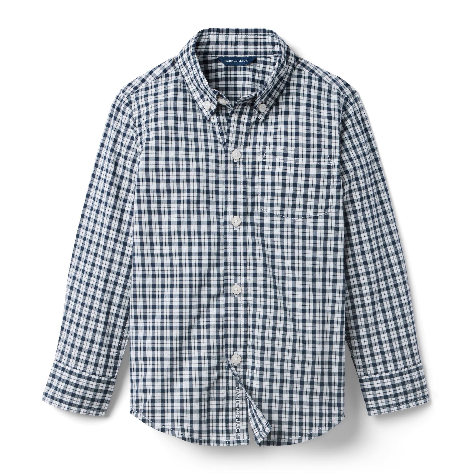 Janie and Jack - Navy Plaid Poplin L/S Shirt