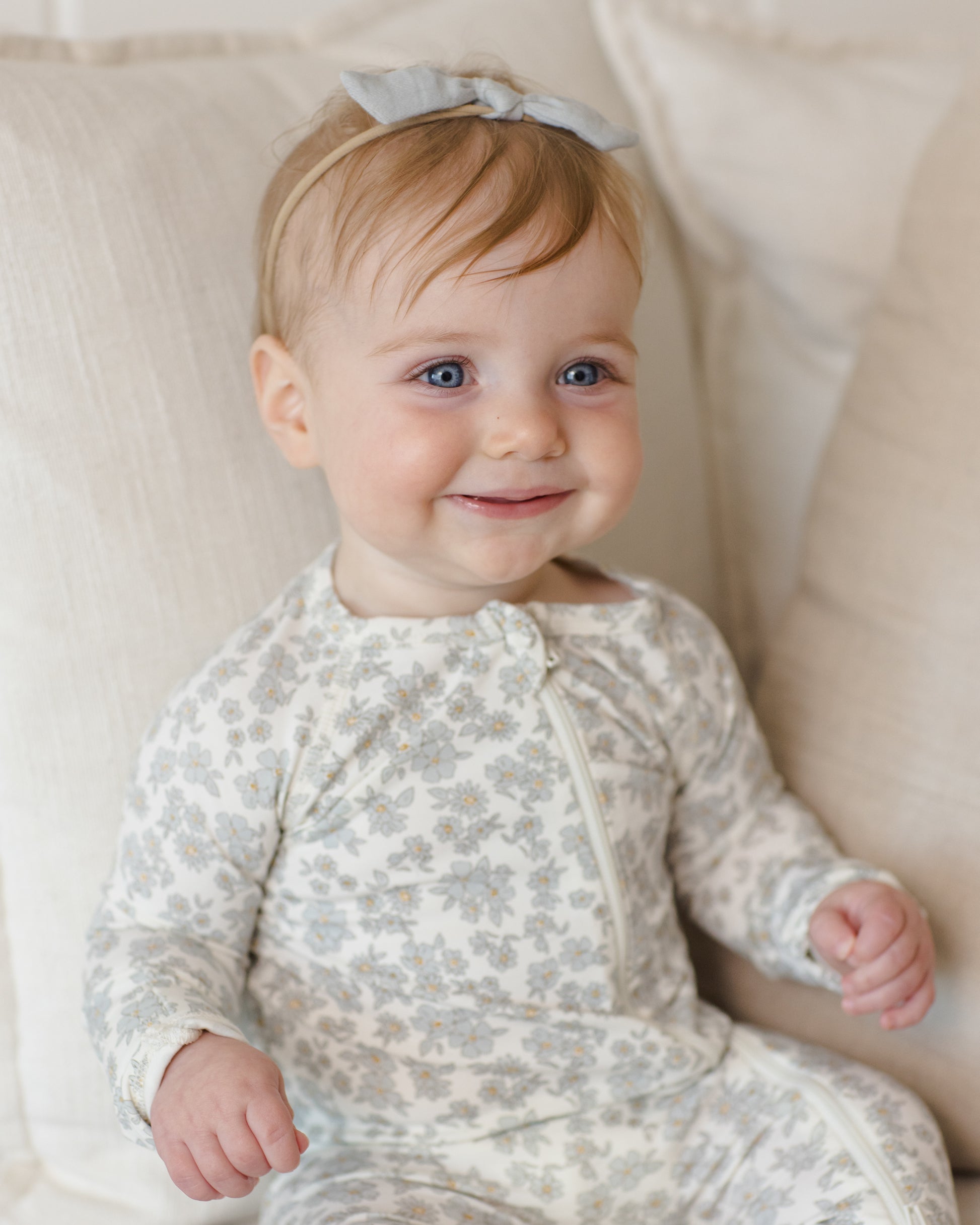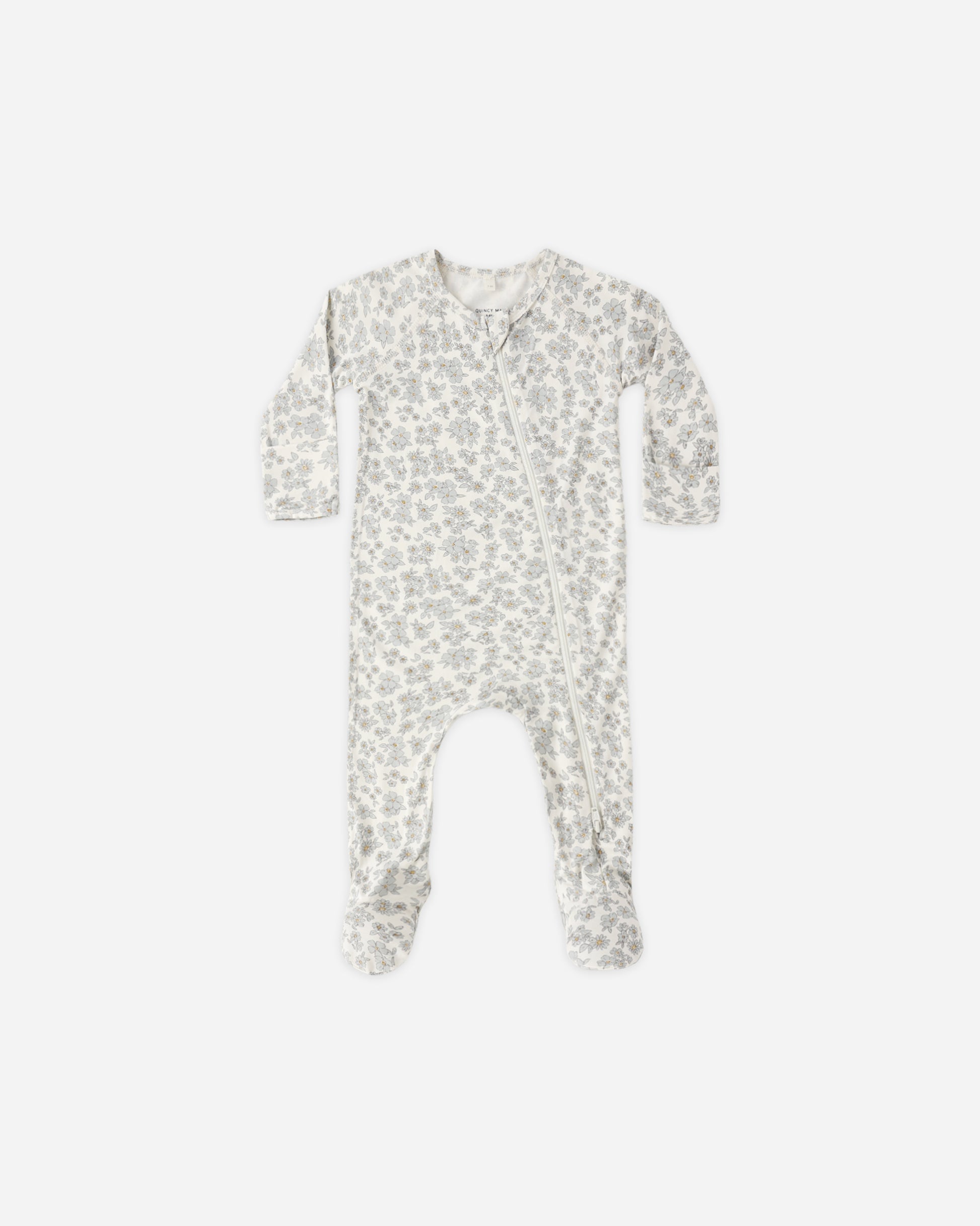 Quincy Mae - Bamboo Zip Footie || Blue Floral