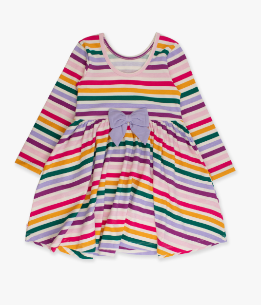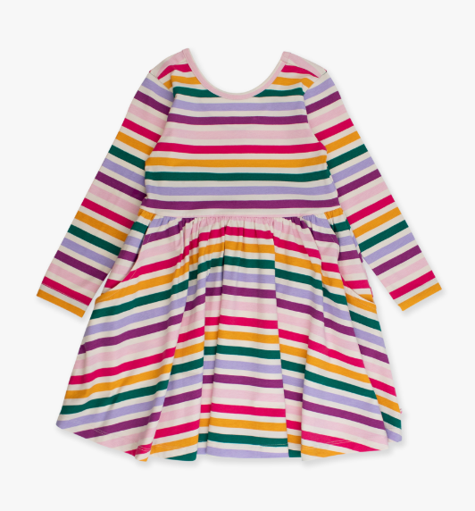 A rainbow of vibrant jewel tones is great for coordinating with fall outfits all season long. Our bestselling long sleeve twirl dress is a must-have addition to any little girl's wardrobe. Crafted from high quality knit fabric, this dress is gentle on skin, ensuring a comfortable fit and easy wear. Functional pockets make it practical, and a sweet bow accent on the back adds the perfect girly touch!