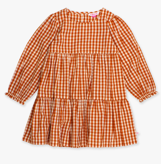 RuffleButts + RuggedButts - Woven Long Sleeve Tiered Twirl Dress - Classic Rust Gingham