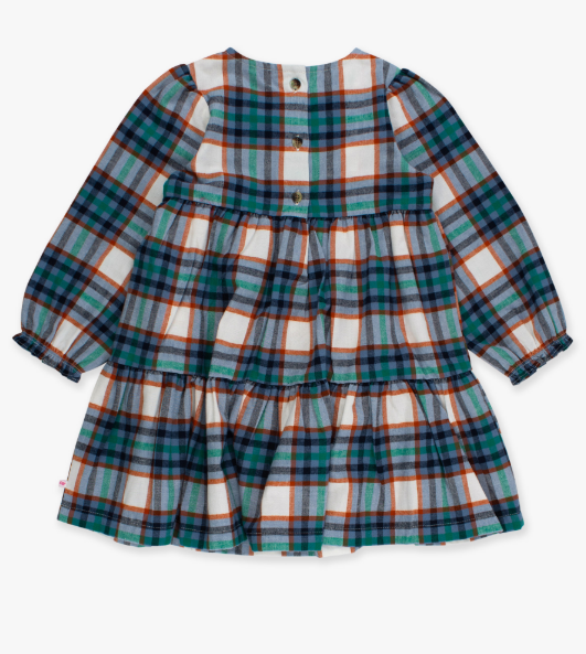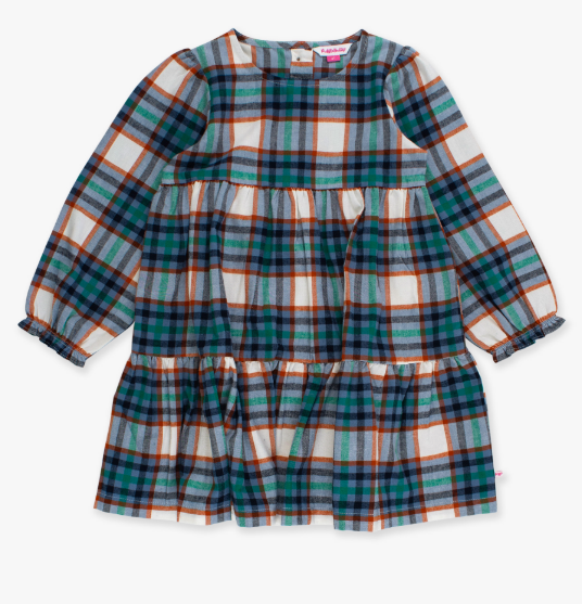 RuffleButts + RuggedButts - Woven Long Sleeve Tiered Twirl Dress - Peyton Plaid