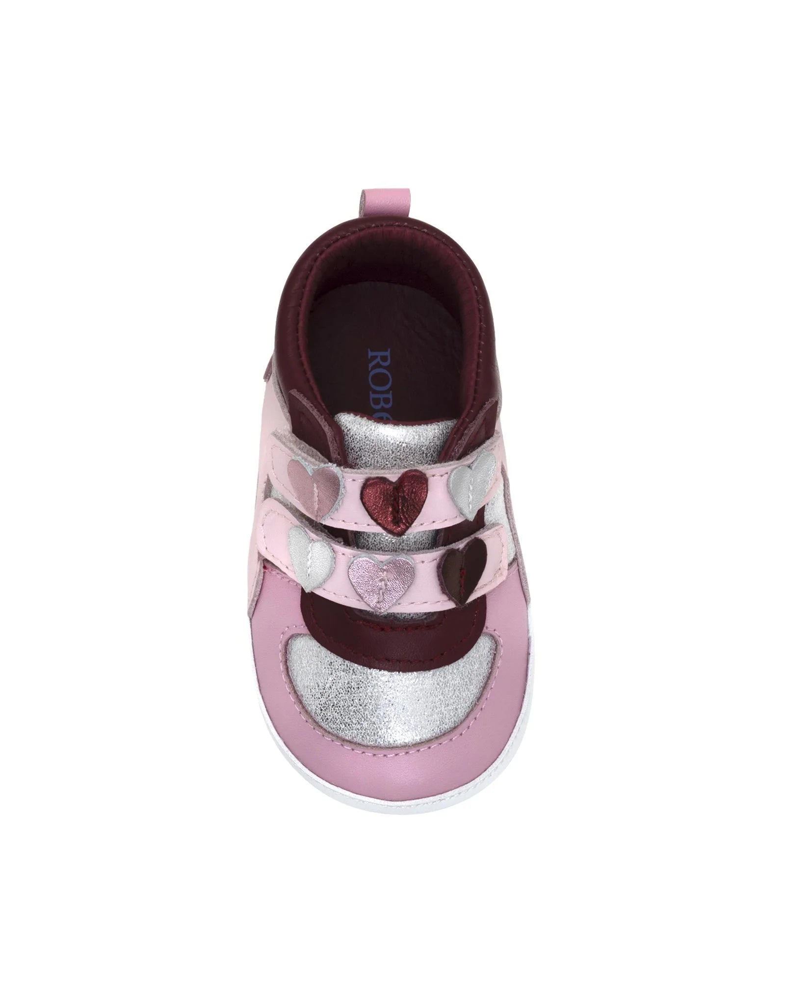 The All Heart First Kicks in Pink are full of charm and support for your little one's first steps. This classic double-strap sneaker features heart-shaped decorations on each strap, adding a sweet touch to the soft pink leather design. With a flexible sole and secure fit, these shoes are made to move, just like your growing baby.