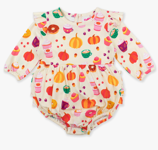 RuffleButts + RuggedButts - Knit Long Sleeve Flutter Bubble Romper - Fall Treats