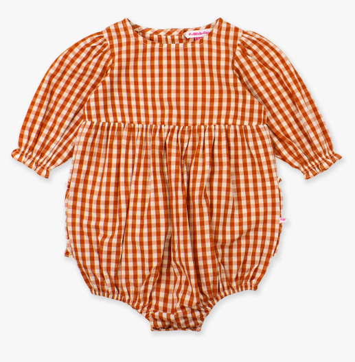 RuffleButts + RuggedButts - Woven Long Sleeve Bubble Romper - Classic Rust Gingham