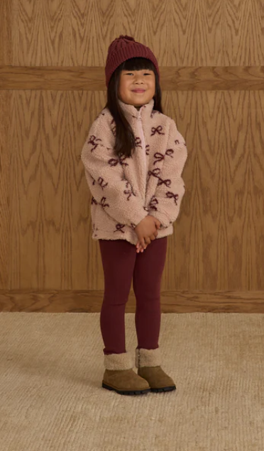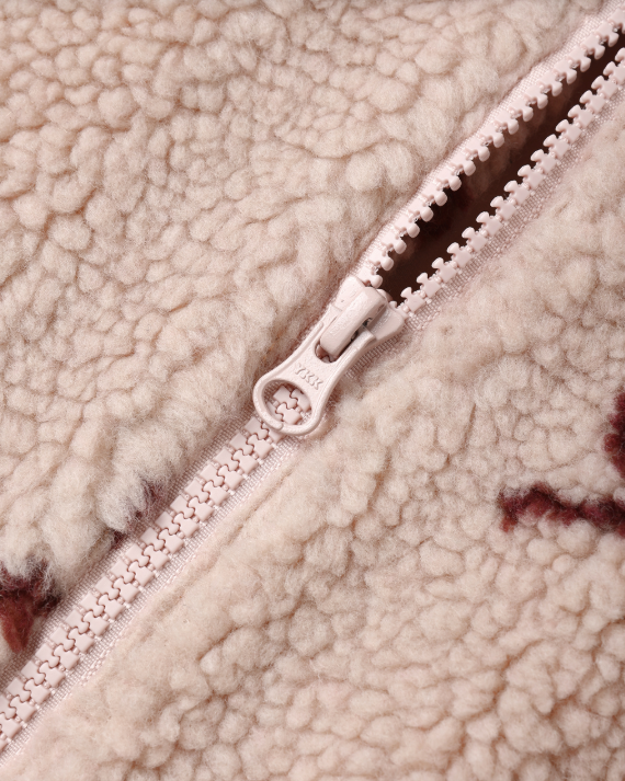 Our shearling Coco Jacket features cozy side pockets, a zipper closure, and a fun pattern with a pop of color to brighten up any outfit.