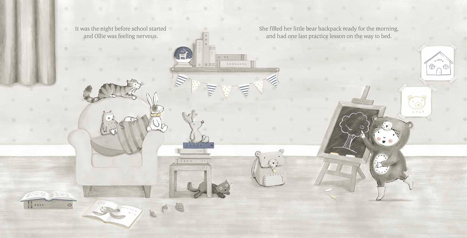 The end of summer can be a bittersweet time, and Ollie isn’t sure if she’s ready to go back to school. But the night before her first day back, Ollie dreams about a magical schoolhouse in the woods full of friendly little animals who make learning an adventure. When Ollie wakes up, she can’t wait to go to school!